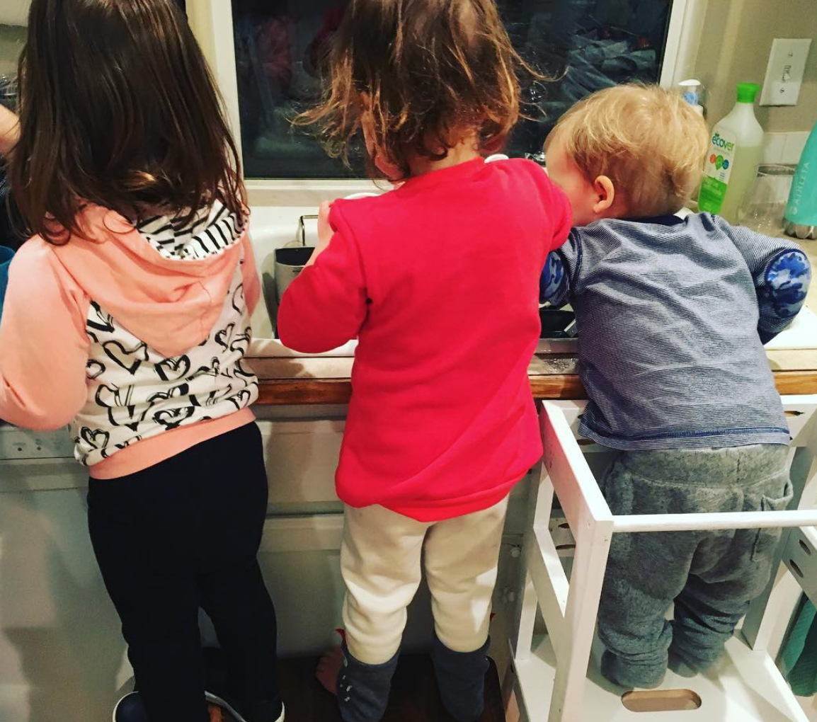 Maybe having THREE people do the dishes is the answer to our never ending pile in the sink? 😂😩