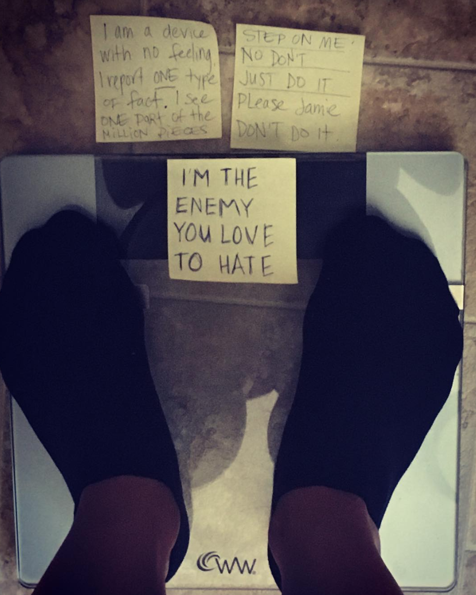 The scale tells me if I’m good enough. The scale reassures the negative talk that runs trough my head when 3 numbers roll out.
