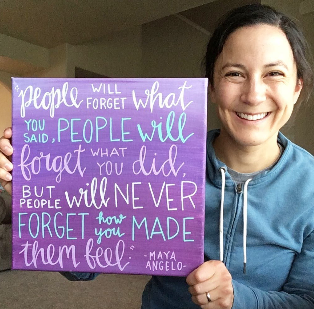 “People will forget what you said, people will forget what you did, but people will never forget how you made the FEEL.” -Maya Angelou .