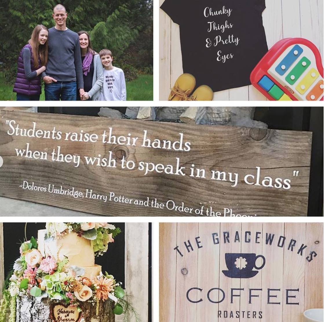 AND---AND (in case you thought I was done) she makes custom vinyl work and custom wood decor for the home. Her work is beautiful, just like everything she creates in life.